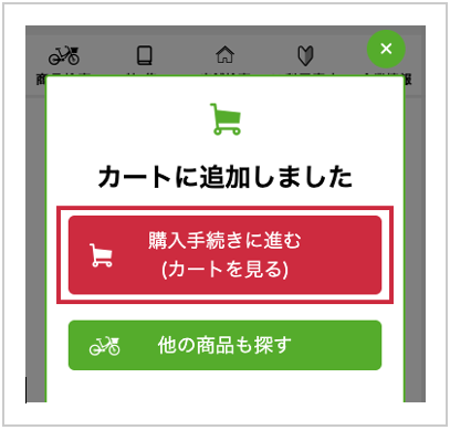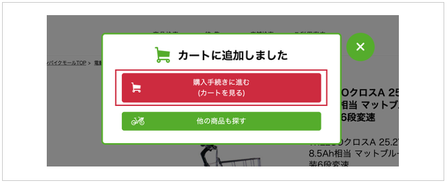 ※引き続きお買い物を続ける場合はバツ印または「他の商品も探す」で戻れます。