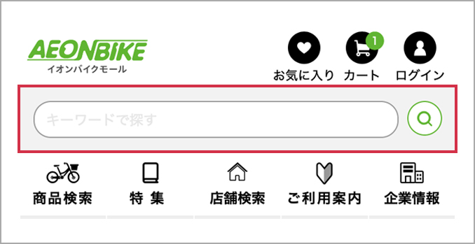 ページ上部の検索窓に、探している商品名、キーワードなどを入力して検索します。