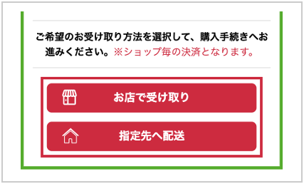 カートからご購入手続きをする場合も同様にご希望のお受け取り方法を選択し、購入手続きへお進みください。